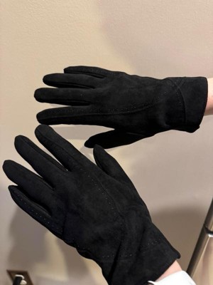 [This review was collected as part of a promotion.] Excellent fit. Soft and warm. I think these might be the softest microsuede gloves I've ever had. Both the thumb and forefinger have touchscreen stitches. Water repellent and not bulky. The black on black stiching makes them look Luxe.