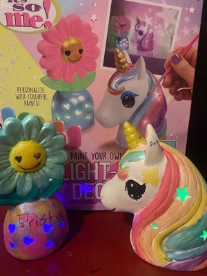 - Paint, personalize, and light up your space with a whimsical daisy and a magical unicorn!