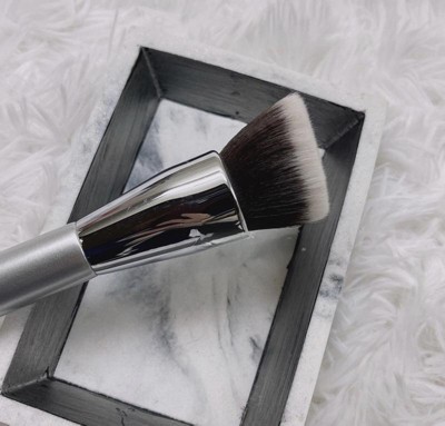 I wanted to try this angled brush because it was on sale and ive previously used IT brushes and enjoyed the results. This brush is just odd. Its a stiff, large, angled brush. I originally wanted to use it with foundation but after dabbing into foundation on the back of my hand, it absorbed so much product. You cant drag it, you have to dab and the more you dab, the more foundation the brush eats. Idk. Not for me. Ill stick to the rounder brush head. I wish they would go back to the smaller brush heads/handles. These new brushes just seem so big and bulky.