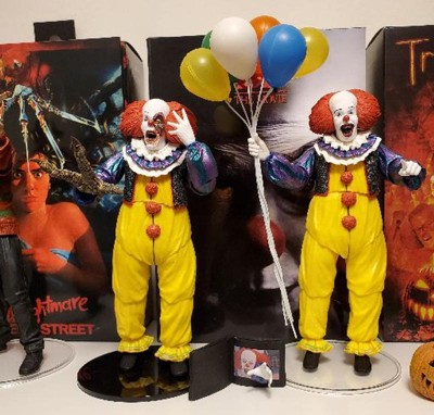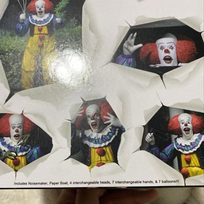 NECA is thrilled to present one of our most frequently requested action figures of all time! From the revered 1990 horror mini-series Stephen King’s IT, Pennywise the killer clown takes action figure form. Based on Tim Curry’s portrayal of the terrifying clown, this 7” scale figure is faithful to his on-screen appearance and packed with detail and accessories. Pennywise is fully articulated and features a total of four interchangeable heads, plus alternate monster hands, noisemaker, bunch of balloons and paper boat. Comes in collector-friendly deluxe window box packaging with opening flap.