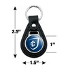 - QUALITY MATERIAL: Our durable round keychain is crafted from leather with a glossy resin-topped emblem featured design shown on one side. Approximately 1.5" (3.8cm) x 2.5" (6.4cm) in overall size, emblem is 1" (2.5cm)..
