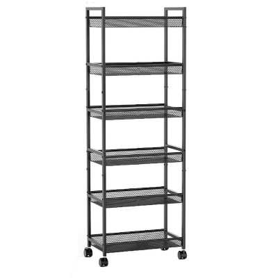 Itopfox 3-Tier Rolling Utility Cart with Wheels, Metal Storage Organizer with Hanging Cups & Hooks, Mesh Baskets for Kitchen, Office, Bedroom, Black