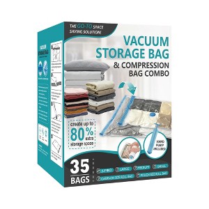 Itopfox 35 Pack Space Saver Bags Jumbo Large Medium Small Travel Roll Up Compression Storage for Clothes Blankets Hand Pump Included