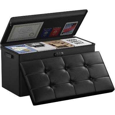 Itopfox Folding Ottoman Bench with Storage, PU Leather Foot Rest, Collapsible Chest for Living Room, Bedroom, Entryway, Light Brown