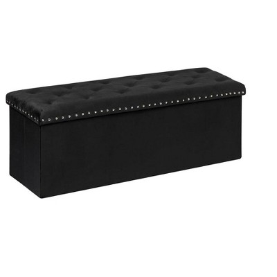 Itopfox Folding Storage Ottoman Bench, Faux Leather Footrest Couch for Living Room, Storage Bench with Padded Seat for Bedroom Hallway, Black