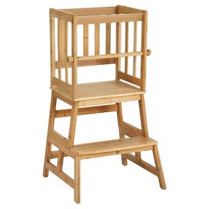 Itopfox Kids Kitchen Step Stool with Removable Safety Rail, Anti-Tip A-Frame Design, Natural Bamboo Toddler Standing Tower, CPC Certified