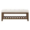 Itopfox Large Rectangular Upholstered Tufted Linen Ottoman Bench with Solid Wood Shelf and Padded Seat Cushion, Ivory