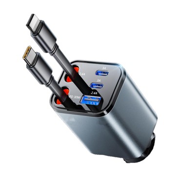 Itopfox Retractable Car Charger Adapter for iPhone 17, 4-in-1 Fast Charging Car Phone Charger, 69W USB C Truck Accessories, Road Trip Essentials Gift