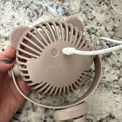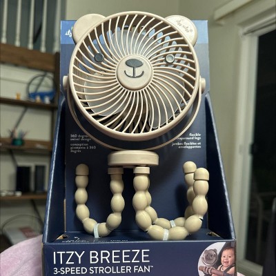 Itzy Ritzy Itzy Breeze 3-Speed Stroller Fan with Rechargeable Battery and Easy Attach Design - Tan Bear