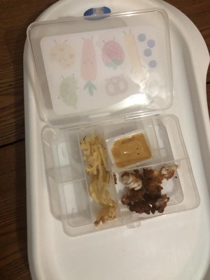 Snack box is cute, but I wish it was more durable, it’s a little cheap and it will leak. The dividers don’t move either. Design is adorable, and it’s easy for my toddlers to open it.