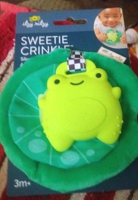 This is a cute little baby toy with lots of different features to keep a little one interested. The lily pad is crinkly and makes great crinkle sounds when squeezed. The frog itself is nice soft silicon which is great for teething.