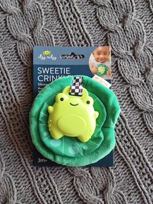 This little crinkle frog is absolutely adorable. I love the quality of the teether that is attached. The desgins are so cute and this would make for a fun baby shower gift. I do wish that the teether was removable for an easier cleaning, but otherwise I would absolutely recommend this.