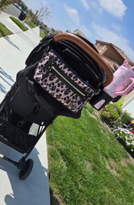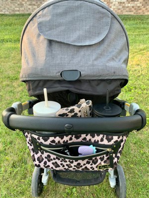 This stroller caddy is so cute and so functional. I love that the leopard matches the rest of my Itzy Ritzy. It's pictured here with 2 24 ounce Simple Modern cups as well as my wallet holding my phone and keys, my toddler's sunglasses, and a teether. I could easily fit a few more toys in the middle section. I LOVE this caddy!