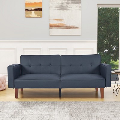 【Upgrade Your Decor and Home】This multifunctional sofa features a modern design with button tufting and nailhead decoration, combining entertainment with comfort. This sturdy and comfortable sofa is perfect for small spaces and is supported by six wooden legs for greater stability. Durable imitation leather or linen fabric ensures comfort and is easy to clean, making it a practical choice for any home.