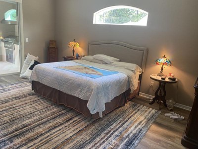 I was looking for a king headboard for the master bedroom when I came across this beautiful queen headboard. The furniture in the guest bedroom did not have a headboard and this stylish example updates everything. It really lightens up the room over choosing more wood and the guests love it.