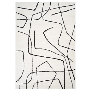 This 2-foot x 3-foot ivory and black abstract area rug, is a great way to add warmth to a room. Ideal for spaces with kids and pets, this rug is stain resistant to help repel dirt and spilled liquids. Built to last, this rug crafted from polypropylene fibers is known for its durability and long lasting appeal. Rugs are a great way to showcase your style, hide imperfections, warm your home and reduce noise. This smaller sized, transitional styled rug is just what you need for your walkway, bedside, in front of door, cabinet, refrigerator, or chair. 24.00-inch h x 36.00-inch w x 0.60-inch d.