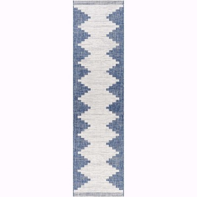 Ivory And Blue Striped Stain Resistant Indoor Outdoor Area Rug