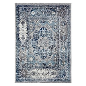 This 2-foot x 3-foot ivory blue and gray medallion area rug, is a great way to add warmth to a room. Ideal for spaces with kids and pets, this rug is stain resistant to help repel dirt and spilled liquids. Built to last, this rug crafted from polypropylene fibers is known for its durability and long lasting appeal. Rugs are a great way to showcase your style, hide imperfections, warm your home and reduce noise. This smaller sized, contemporary styled rug is just what you need for your walkway, bedside, in front of door, cabinet, refrigerator, or chair. 24-inch h x 36-inch w x 0.38-inch d.
