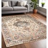 Ivory Navy and Orange Medallion Power Loom Area Rug