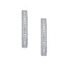 One earring is shown hanging, revealing a vertical cascade of these elongated, sparkling stones, creating a sleek and elegant drop. The other earring is presented as a hoop, showcasing how the baguette-cut stones are meticulously set along the front half of the hoop, catching the light from every angle. Smaller, round cubic zirconia stones are delicately pavé-set along the inner and outer edges, adding an extra layer of brilliance and refinement. The secure latch-back closure ensures comfortable and confident wear.