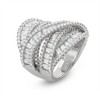 Turn up the sparkle with this show-stopping ring from Ivy Sharpe. Radiating luxury, this statement piece is beautifully crafted with rows of brilliant and baguette-cut cubic zirconia, artistically arranged in sweeping, layered curves that catch the light from every angle. Plated in sleek silver, it delivers high-impact glamour with timeless sophistication.