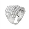 Elevate your elegance with this show-stopping Ivy Sharpe ring, a true statement of glamour and grace. Crafted in lustrous silver plating, this bold band features alternating rows of brilliant round-cut and baguette-cut cubic zirconia stones, creating a luxurious layered effect that captures the light from every angle. The intricate arrangement delivers maximum sparkle and a red-carpet-worthy aesthetic.