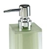 The Izod Marina Green Lotion, Soap and Sanitizer Dispenser features a clear resin exterior that shows off the sage green soap reservoir on the inside. The shiny silver pump coordinates nicely with the sleek, modern look. Made of durable, hand-painted resin with plastic pump for easy care and durability. Measures W 2.63" x L 2.63" x H 7.75". Other matching bath accessories and other colors available.