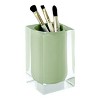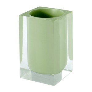 The Izod Marina Green Tumbler features a clear resin exterior that highlights the painted sage green interior to combine for a sleek, modern look. Also ideal for holding make-up brushes, pens/pencils and looks great in the bathroom or office. Made of durable resin. Measures W 2.5" x L 2.5" x H 4.25". Other matching bath accessories and other colors available.