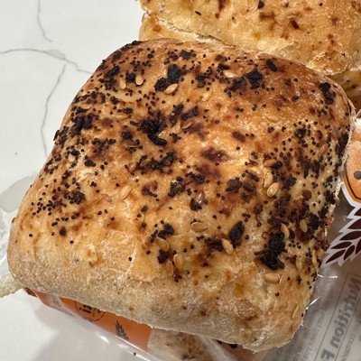 Tried these on a whim. Not always the biggest fan of "everything" seasoning because it's usually too oniony. Not these, they're a perfect blend of spices without being overpowering and leaving that oniony taste in your mouth all day. Slice, drizzle inside side with a little olive oil, toast in the air fryer at 400 degrees for 3 minutes on each side. Perfection. I used them for grilled chicken sandwiches but I want to do a BAT (Bacon, Arugula, Tomato) on them next. I legit will never buy another bread brand if I can get this brand. I haven't tried their sliced bread but I will soon. I bet it's amazing too.