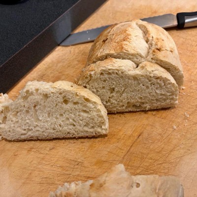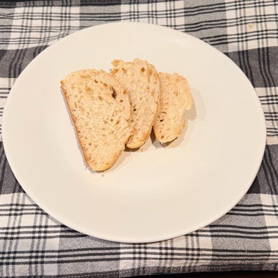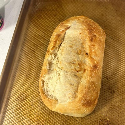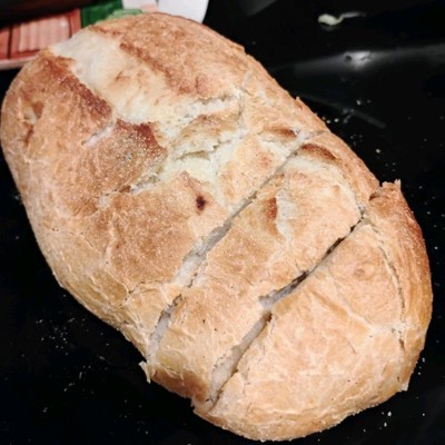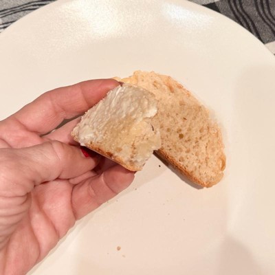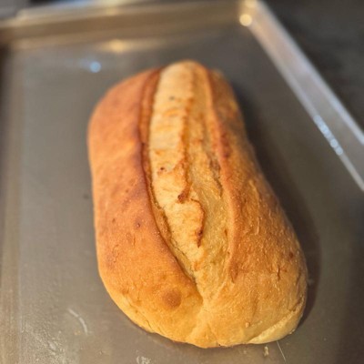 [This review was collected as part of a promotion.] I like the garlic flavor of this bread! I baked it on the longer end, about 10 minutes, and the inside was nice and soft, maybe a little too soft for some, but outside was crunchy. I cut slices and put them in the toaster because I wanted the inside to be less soft and chewy and that did the trick. It's a great side for Italian night or for any savory meal. Tastes amazing with butter!