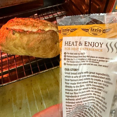 [This review was collected as part of a promotion.] I am impressed with the simplicity and quality of the ingredients in this Izzio bakery garlic bread. I find the texture to be very nice and the crust has a nice crunch to it compared to the softness of the bread inside. I do wish the garlic flavor came through a little more though. And since it’s advertised as “take and bake” I wish the front of the packaging had info on this process, from the front it looks as though it is just ready to eat. Reading the instructions on the back makes it clear you need to bake it before eating for best taste