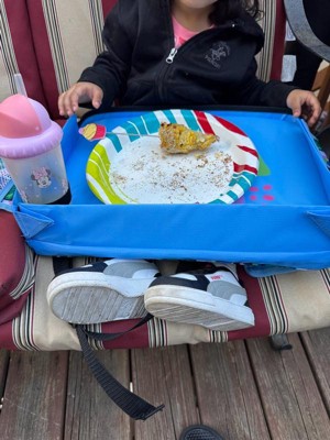 [This review was collected as part of a promotion.] Great for travel. My son love it as he can eat his snack without needing to hold his device. I also like that it big enough to cover the car seat so no more snacks falling between the cracks. It stayed strong on top of the car seat and easily attached.