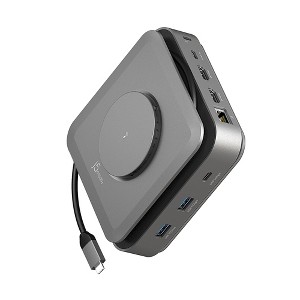 This compact multi-port dock features dual HDMI, USB ports, Gigabit Ethernet, SD/microSD slots, an audio jack, and 140W Power Delivery 3.1. It includes a space-saving mount, 15W wireless charging, and a cable storage compartment—perfect for creating a workstation anywhere with a single USB-C connection.