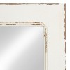- Mirror frame is constructed of wood with a distressed finish and arrives completed assembled ready for use