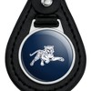 - QUALITY MATERIAL: Our durable round keychain is crafted from leather with a glossy resin-topped emblem featured design shown on one side. Approximately 1.5" (3.8cm) x 2.5" (6.4cm) in overall size, emblem is 1" (2.5cm)..