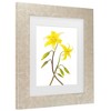 This ready to hang, matted framed Wall Décor Living Room by Trademark Fine Art features a yellow flower on a white background. that'll look great in any bedroom, kitchen, bathroom, or apartment. Whether it's contemporary, rustic, modern, or traditional style wall art décor, Trademark Fine Art offers a variety of high-quality, carefully built pieces that will surely complement any style with art themes that range from fascinating abstracts to breathtaking landscapes. Each bathroom wall art piece is printed on durable cotton poly blended canvas using Giclee, a process for creating high-quality fine art reproductions that are nearly indistinguishable from the original piece.