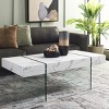 A juxtaposition of ethereal and substantial style, this rectangular glass leg modern coffee table makes an artistic statement. Inspired by contemporary architecture, its translucent glass and sleek white finish are ideal for the minimalist living room.