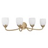 Elegant curves and soft, glowing beauty define the Jacobs Collection-a delicate balance of form and feeling. Finished in a warm bronze gold, its gracefully arched arms and petal-like cups cradle tulip-shaped etched alabaster glass shades, casting a light that feels tender and timeless. Available in multiple vanity sizes and as a single-light sconce, Jacobs is designed to bloom beautifully in any space-from cozy powder rooms to grand master baths. With every switch, it invites you into a moment of quiet luxury and refined romance.