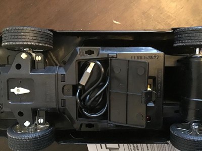 [This review was collected as part of a promotion.] While the plastic on the car is thinner than I’d like and the car is not as cool looking as I thought it would be the built in charging cable is a huge plus. You need a USB adapter plug of your own but I love that you open the cover on the bottom of the car and pull out the cable to plug it in, was sick of searching for cords that the kids lose in about two minutes. The remote uses 2 AA batteries and it actually came with them making this a car you could use pretty quickly. Depending on the plug you use, you could charge the car and be playing in a half hour or longer without a rapid charge plug. The car doesn’t have working lights of any kind, something many have so it’s just a very basic rc car. The controls were pretty easy for our 5 year old to master quickly making it a good choice for him. The kids got a half hour of runtime before the car got sluggish and needed a quick charge but that was better than the average runtime between charges for similar cars they have owned. Pluses included the cable being connected to the car, ease of operation, fast charging option and batteries included for the remote. The only real cons for me was the very thin plastic construction and the appearance of the car, it was very bare bones.