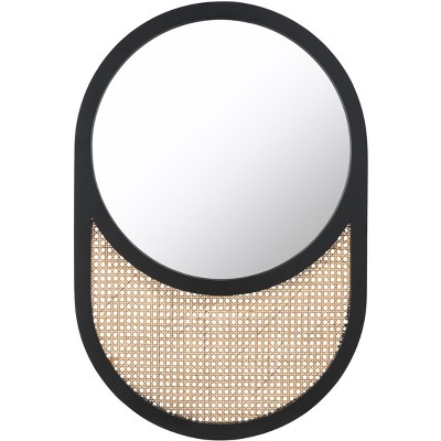 Transform your space with the Jalen 24 inch black and natural wood mirror. Combining modern aesthetics with timeless design, this piece perfectly complements any decor. Its sleek black frame encases an exquisite natural wood border, offering a harmonious blend of bold and subtle contrasts. The mirror's generous 24 inch size enhances visual depth and light reflection, making smaller spaces feel larger and more inviting.