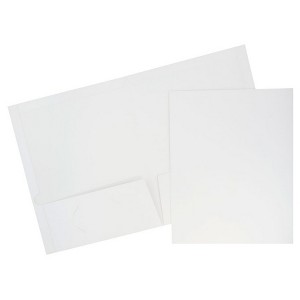 JAM 6pk Glossy Paper Folder 2 Pocket - White: Stationery with Internal Pockets, Non-Pronged, 100 Sheet Capacity