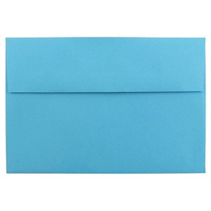 JAM Paper Brite Hue A8 Envelopes measure 5 1/2x8 1/8 inches and are made out of smooth, high quality, 24lb, and 30% recycled paper. These splashy colored envelopes are a cheerful choice for birthday parties, wedding invitations, or just brighter business envelopes. Anyone who receives your envelopes will smile, no matter what age or gender. This pack contains a total of 50 envelopes. Each one features a bright color and a straight flap with a reliable gum closure.