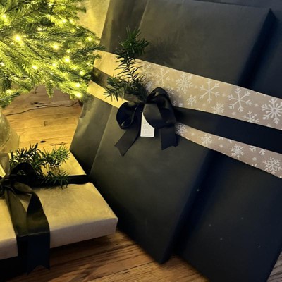 Great quality hard to find flat black wrapping paper! Thick paper and didn’t tear at all. If you get nice clear tape, it will stick to it while wrapping. So pretty