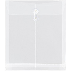 JAM Paper Letter Open End Plastic Envelopes with Button and String Tie Closures are practical and versatile supplies for all of your document storage and protection needs! Whether your documents are sitting inside of your desk drawers, making an appearance in the board room, or being transported from place to place, these envelopes keep them orderly and safe from damage.