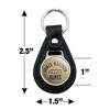 - QUALITY MATERIAL: Our durable round keychain is crafted from leather with a glossy resin-topped emblem featured design shown on one side. Approximately 1.5" (3.8cm) x 2.5" (6.4cm) in overall size, emblem is 1" (2.5cm)..