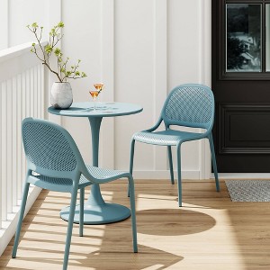 With the Shay Chair as the star of your outdoor bistro table, indoor dining table, or desk, you can rest assured that style meets function. Designed for today’s modern lifestyle, the Shay chair features just the right amount of simple yet classic look and feel, that also blends well in any setting. Made for enjoying outside, but just as ideal for indoors, the well-crafted chair features a contoured molded seat for seamless comfort and a curved and perforated back. The small footprint is the perfect chair for around-the-dining-table. Lightweight and made of a durable molded polypropylene, it’s easy to stack multiple chairs for space-saving storage. The simplicity of the design makes it a timeless piece that goes well in any setting and suits whatever your needs are. Weatherproof and no assembly required. Measures 19.7”W x 21.7”D x 31.7”H. Seat height 18.”