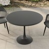 A minimalist, timeless silhouette is what makes the Kurv 39” Bistro Table special. The sturdy, space-saving design and construction is what takes it from midcentury inspiration to today’s modern lifestyle. Whether as a stylish dining table for small spaces or chic conference table, the classic design goes well in any setting and fits nicely in nooks with its rounded edge table top design. The compact design fits comfortably just about anywhere, and it’s easy to configure with four chairs comfortably. Made for enjoying outside but just as ideal for indoors, the durable all-steel table features easy to clean surfaces and rubber padded base to prevent scratches. Minor assembly required. Measures 39.4” Diameter x 23.6” Base Diameter x 29.9” Height.