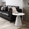 Add a touch of glamour to your home or office design with the Leda Side Table. Featuring a stylish faux white marble table top and black fluted base, the table lends a dramatic element to the space. Designed for today’s modern lifestyle, the table is made for both indoors and outdoors, and is the ideal piece to accompany a sofa, arm chair, bed, or patio furniture. The compact footprint is perfect for small spaces. Lightweight, weatherproof, and made of a durable molded clay fiber. Easy to clean surfaces. No assembly required. Measures 17.7”W x 17.7”D x 18.9”H. Base diameter is 12”W.
