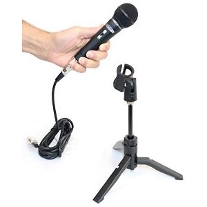 * Quality dynamic microphone with broad sound surface area * Fold-up flat mini adustable height tripod microphone stand The Jammin Pro DJTMK200 Wired Mic is a professional-grade microphone designed for live performances, karaoke, and recording. It offers high-quality audio capture with minimal interference, making it suitable for vocalists and presenters who require reliable and clear sound.* Detachable microphone holder * 10-foot detachable XLR cable * On-off switch on microphone