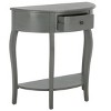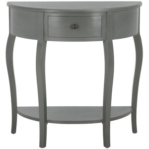 Bring French country charm to your hall or entry with this delightful Jan Console. Jans elegantly curved cabriole legs beautifully enhance its demilune silhouette, and an ash grey finish perfectly complements any decors color scheme.
